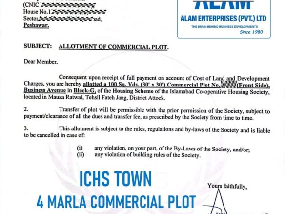 ICHS TOWN 4 Marla Commercial and 5, 7, 10 Marla & 1 Kanal Re