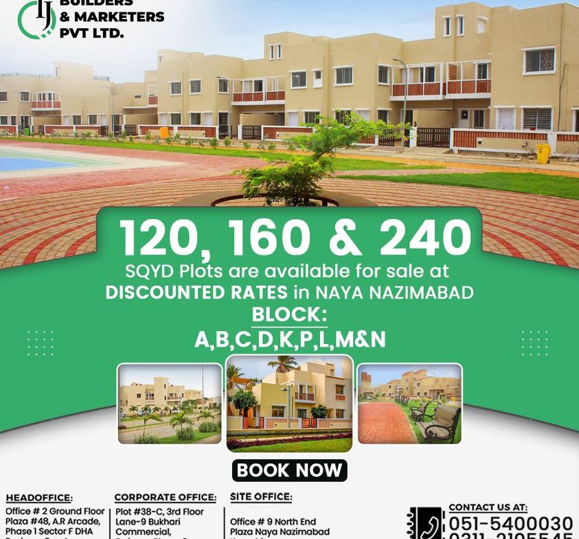 120, 160 & 240 SQYD plots are available for sale at discounted rates in NAYA NAZIMABAD