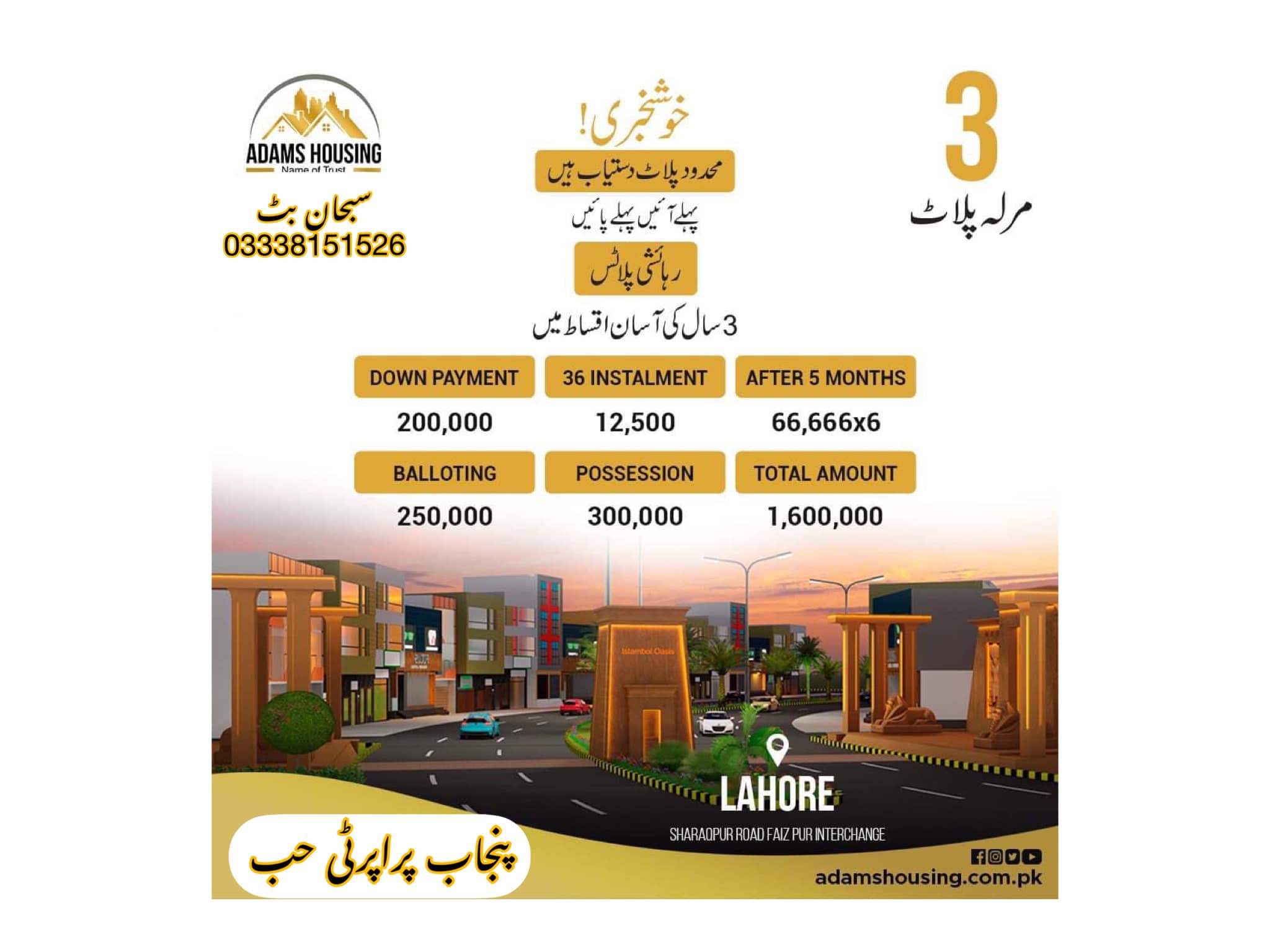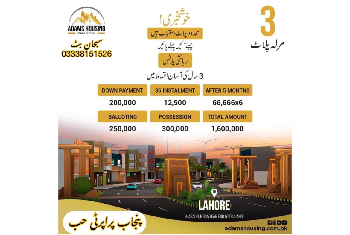 3 Marla Residential Plot available on an easy installment plan in Adam Housing Lahore