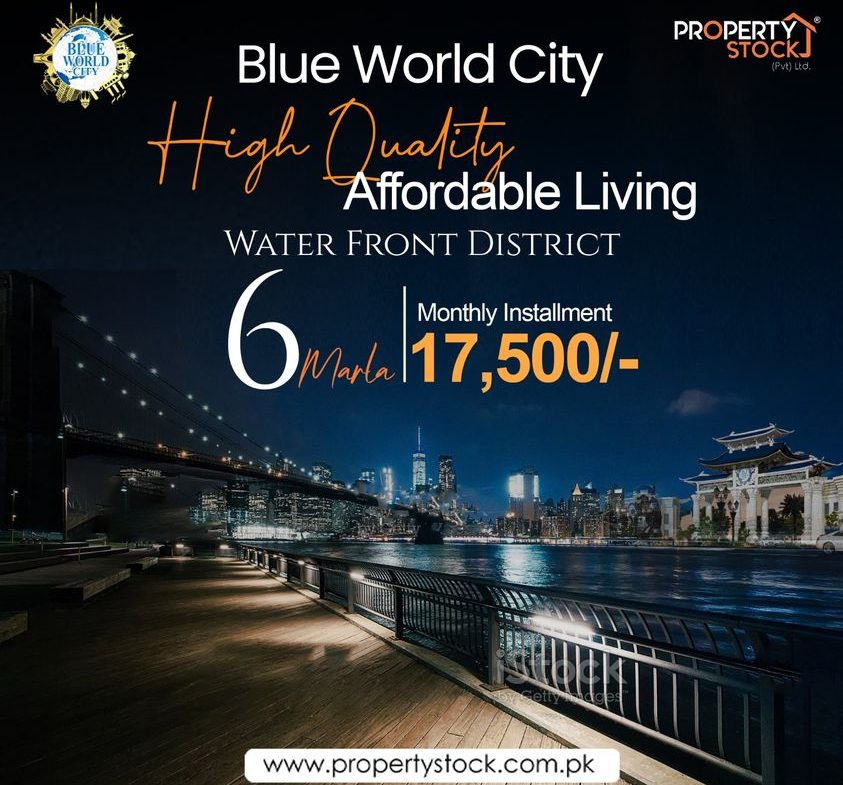 6 Marla plots are available on the monthly installment of Rs.17,500 in the Waterfront District Block of Blue World City, Islamabad.