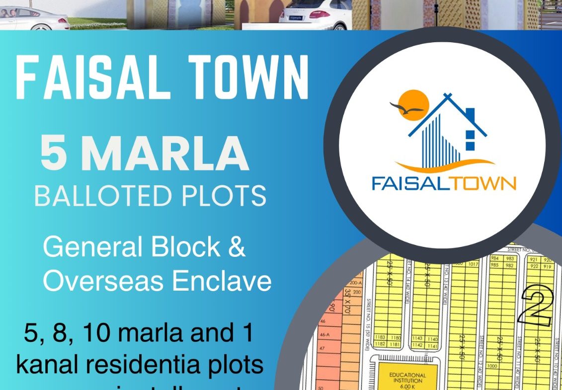 5, 8, 10 marla and 1 kanal residential plots in Faisal Town Overseas Block on 4.5 year easy installments.