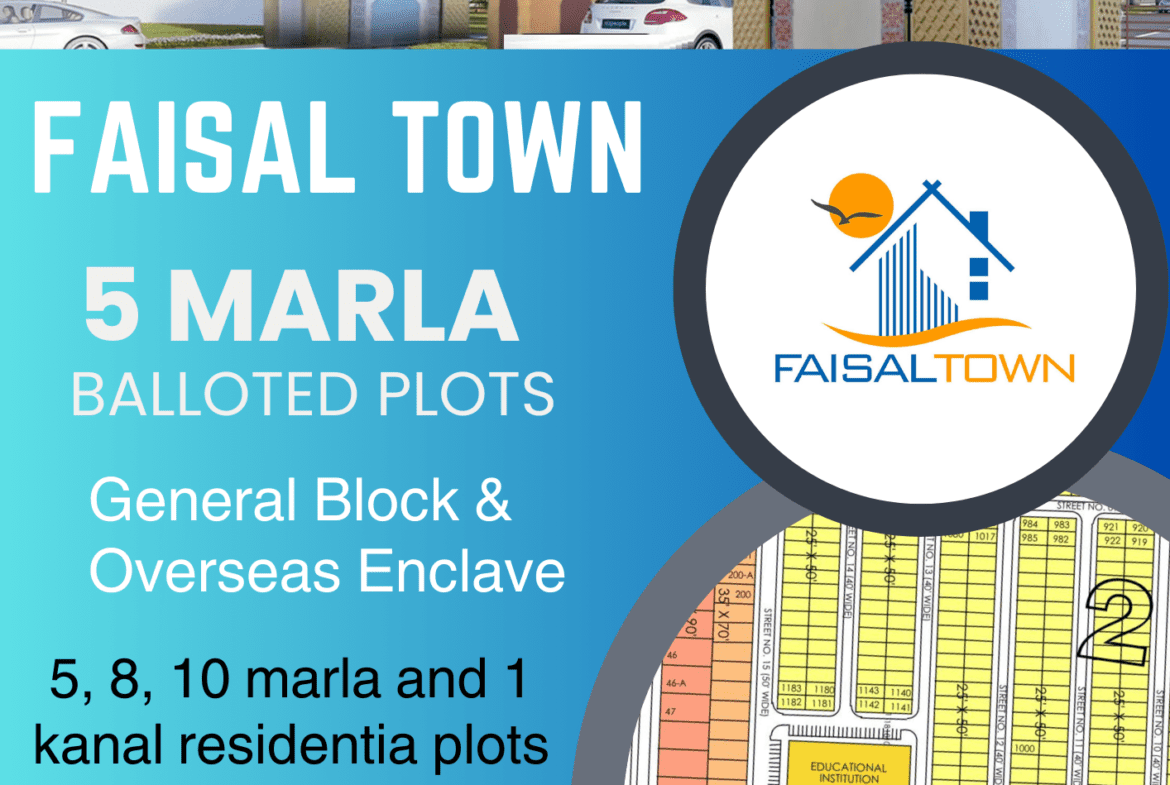 5, 8, 10 Marla and 1 kanal’s residential plots in Faisal Town Overseas Block on 4.5 year easy installments.