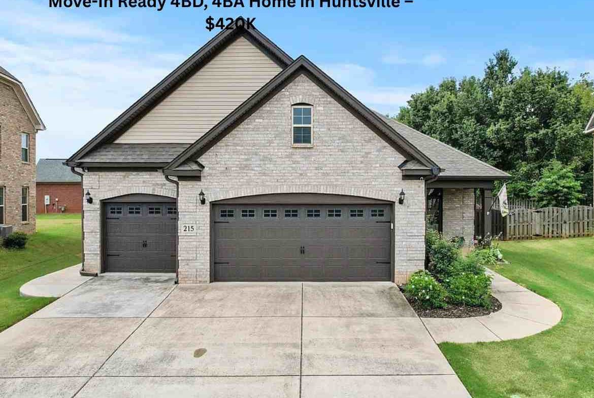 Move-In Ready 4BD, 4BA Home in Huntsville – $420K